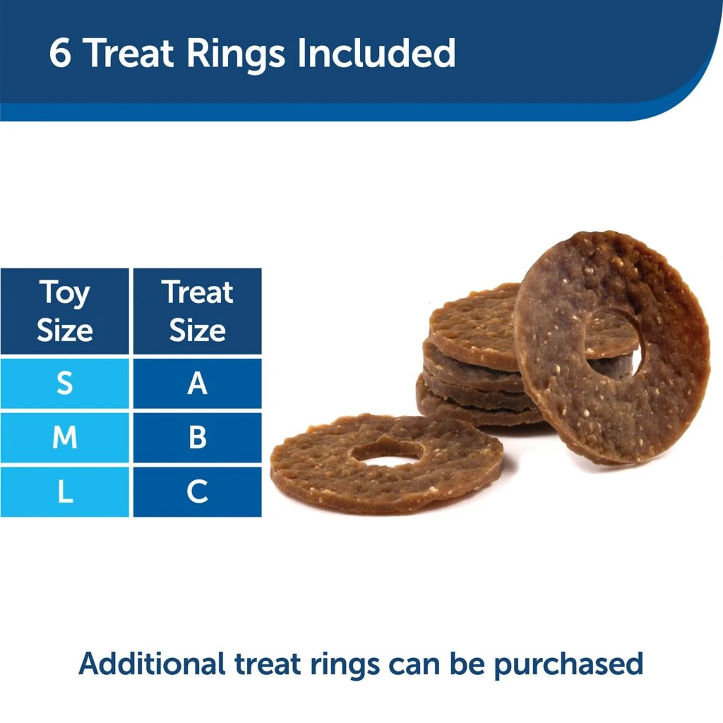 - Treat Rings Included – 4 Busy Buddy rawhide treat rings are included (additional treat rings available separately)