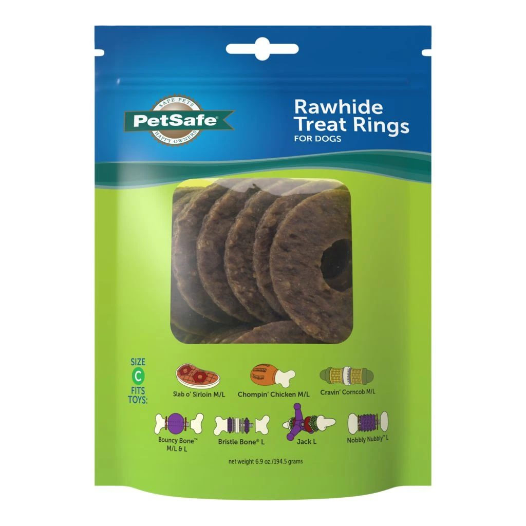 - 3 Toys in 1 – Three chewing surfaces for your dog to gnaw on; includes 4 Busy Buddy treat ring refills (additional treat ring refills available separately)